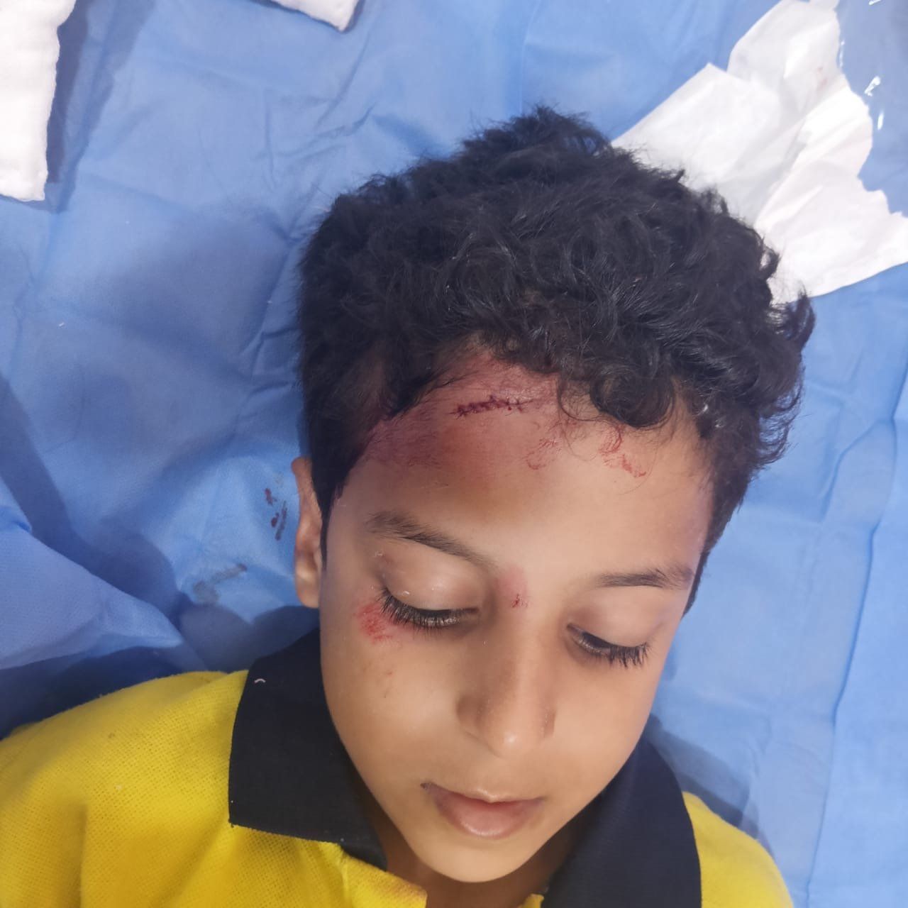 وبحسب روايته، فقد تم نقل الطفل بعد ذلك إلى إحدى العيادات، وهناك أوضح لهم الطبيب مدى عمق الإصابة، وضرورة نقله إلى مستشفى لظهور عظمة الجمجمة.