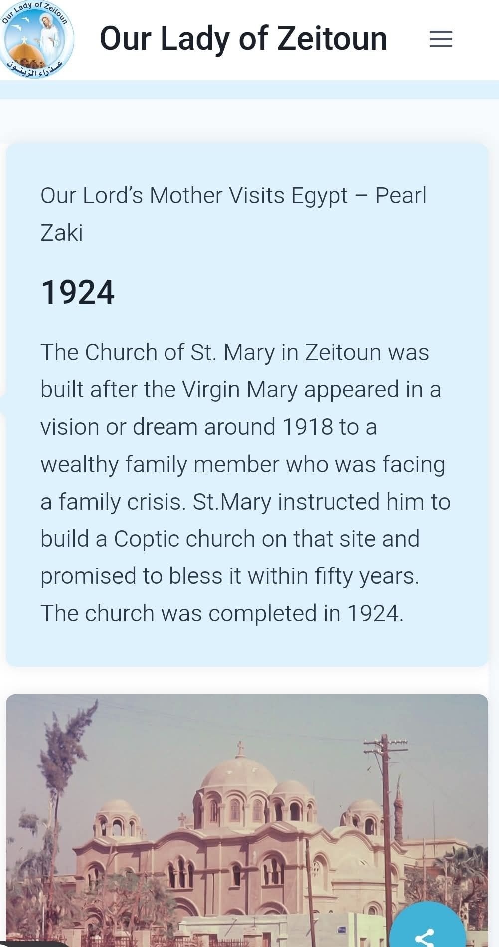 من المنتظر إطلاق الموقع يوم 18 أكتوبر الجاري بالتزامن مع الاحتفال بمناسبة اليوبيل المئوي لتأسيس كنيسة القديسة العذراء مريم بالزيتون.