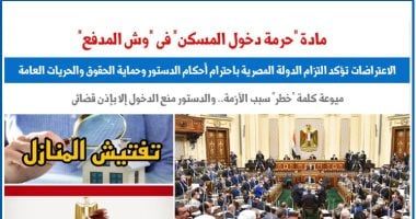 مادة "حرمة دخول المسكن" في "وش المدفع".. الاعتراضات تؤكد على التزام الدولة المصرية بإحترام أحكام الدستور وحماية الحقوق والحريات العامة.. وميوعة كلمة "خطر" سبب الأزمة.. والدستور منع الدخول إلا بإذن قضائى