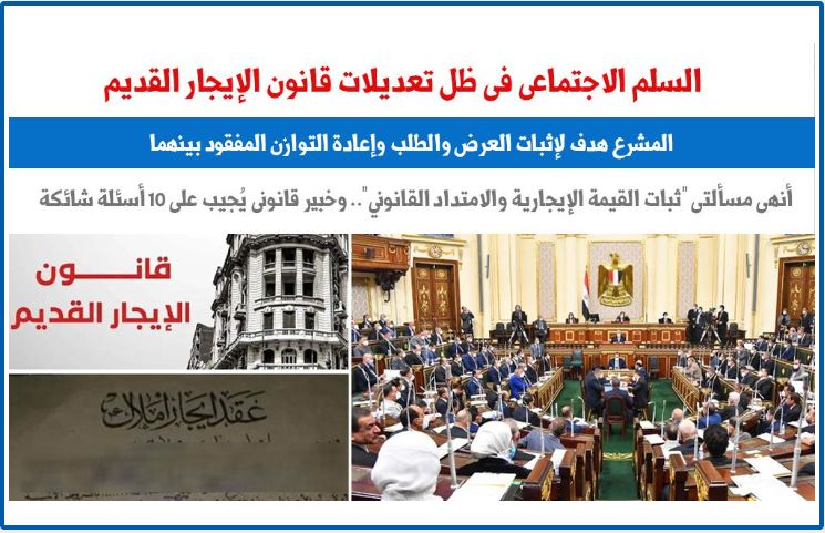 في التقرير التالى، نلقى الضوء على السلام أو السلم الاجتماعي في ظل قانون الإيجار الجديد، حيث حاولت الحكومة مراراً وتكراراً التخفيف من وطأة الأزمة تارة بقصر الامتداد على جيل واحد وطبقة واحدة، وتارة أخرى بإنهاء عقود الأشخاص الإعتبارية خلال مهلة محددة، وكل ذلك في محاولة للعودة إلي الأصل العام - حرية التعاقد وأن العقد قانون المتعاقدين - حتي صدر حكم الدستورية الأخير الذي فجر الأزمة "بعدم دستورية ثبات الأجرة السنوية للأماكن المرخص لها لأغراض السكنى في قانون الإيجار القديم".