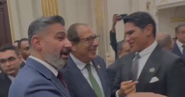 وفي لحظة لافتة، جمعت الفنان ياسر جلال والنائب حسام الخولي والمهندس أحمد أبو هشيمة عند مدخل القاعة، و تبادلوا أطراف الحديث قبل الدخول إلى مقاعدهم.