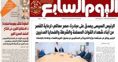 تنشر "اليوم السابع" فى عددها المطبوع الصادر غدا الأربعاء، الرئيس عبد الفتاح السيسى يصدق على مبادرة «مصر معاكم» لرعاية القصر من أبناء شهداء القوات المسلحة والشرطة والضحايا المدنيين.. الرئيس يوافق على ضم شهداء وزارة الخارجية إلى المستفيدين من صندوق تكريم الشهداء وإعفاءات بالجامعات.