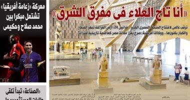 تنشر "اليوم السابع" فى عددها المطبوع الصادر غدا الخميس، «أَنا تاج العلِاء ِ فى مفرِق الشرق».. ترقب عالمى لافتتاح المتحف المصرى الكبير.. فرانس 24: أرض الفراعنة تبهر الصغار والكبار بكنوزها.. ووكالة أفريقية: صرح يعزز مكانة مصر كعاصمة تاريخية للتراث.