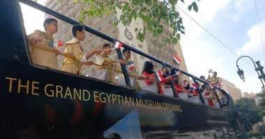 وأكد الدكتور إبراهيم صابر محافظ القاهرة انطلاق الأوتوبيسات المكشوفة التى اعدتها محافظة القاهرة لتجوب شوارع العاصمة ضمن حملتها الترويجية لافتتاح المتحف الكبير، ويشارك فى جولات الأتوبيسات المفتوحة عدد من شباب وفتيات مراكز الشباب بالقاهرة يرتدون الزى الفرعونى، ويحملون أعلام مصر.