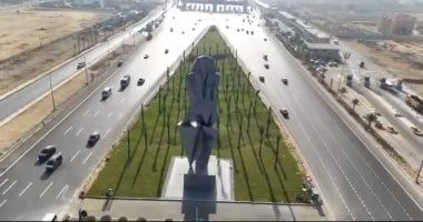 التمثال الموجود بمدخ الطريق للمتحف المصرى الكبير