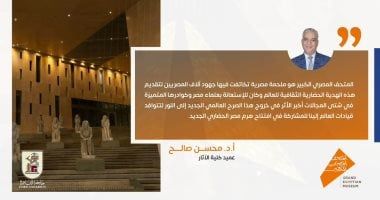 الجمعة، 31 أكتوبر 2025 11:18 صأكد الدكتور محسن صالح عميد كلية الآثار بجامعة القاهرة، أن المتحف المصري الكبير هو ملحمة مصرية تكاتفت فيها جهود آلاف المصريين لتقديم هذه الهدية الحضارية الثقافية للعالم وكان للاستعانة بعلماء مصر وكوادرها المتميزة في شتى المجالات أكبر الأثر في خروج هذا الصرح العالمي الجديد إلى النور لتتوافد قيادات العالم إلينا للمشاركة في افتتاح هرم مصر الحضاري الجديد.