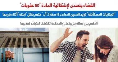 القضاء يتصدى للمادة 60 عقوبات.. ويعاقب أب بالسجن 15 سنة لاتهامه بقتل ابنته