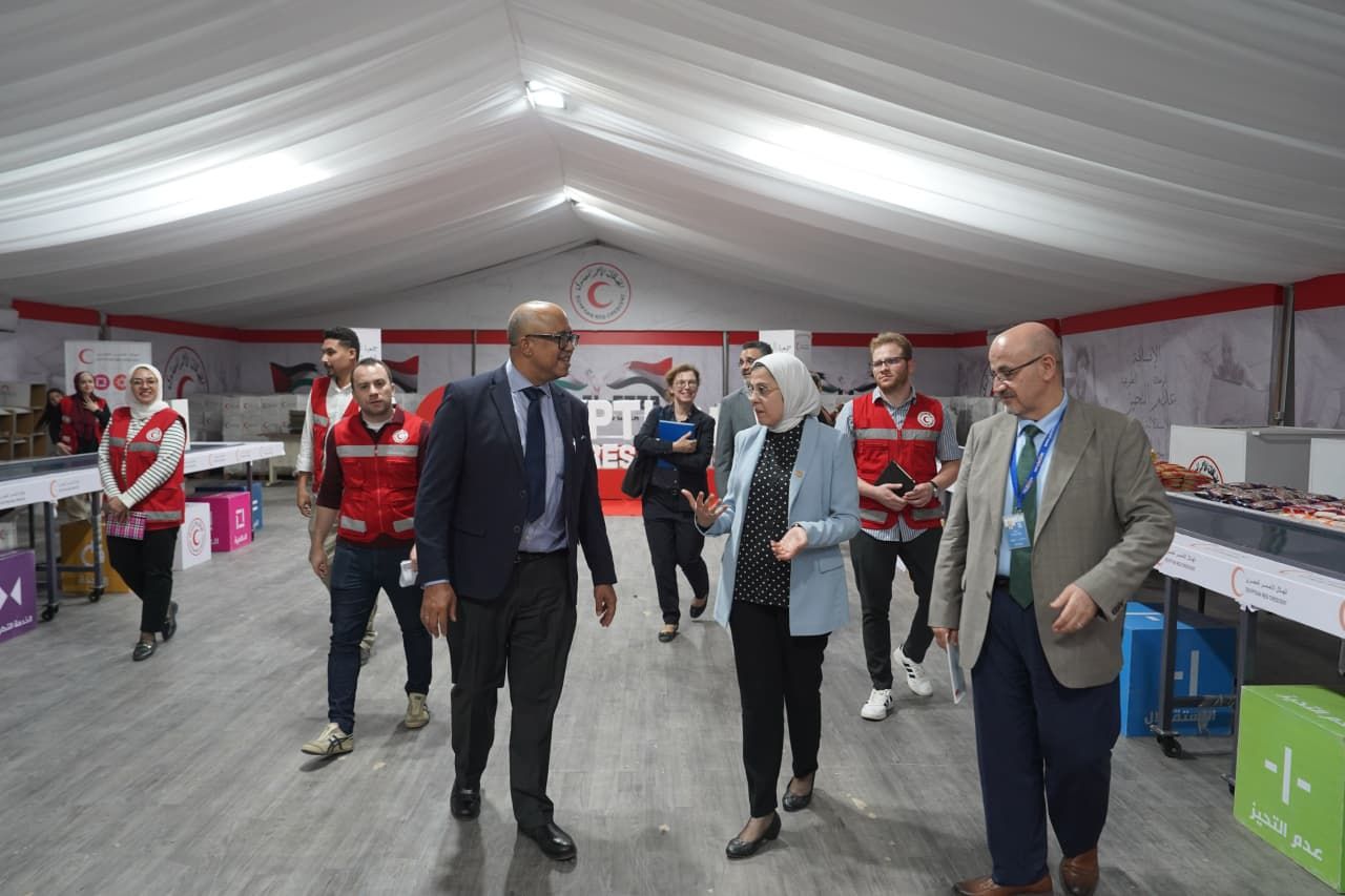 كما زار الوفد مركز تعبئة وتجهيز المساعدات الإنسانية، حيث تعرف على مراحل تجهيز السلال الغذائية، وشارك في تعبئة المساعدات الموجهة إلى غزة، في بادرة رمزية عبّروا من خلالها عن تضامنهم مع الشعب الفلسطيني، وتركوا رسائل دعم موقّعة بأسمائهم داخل صناديق الهلال الأحمر المصري المتجهة إلى أهالي القطاع.