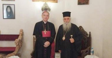 الأربعاء، 12 نوفمبر 2025 12:22 مزار اليوم، رئيس الأساقفة نيقولاس هنري، السفير البابوي بمصر،سفير الفاتيكان، المتروبوليت سيميون بابادوبولوس، رئيس أساقفة سيناء وفاران ورايثو، ورئيس دير القديسة كاترين المستقل المقدس، بجبل سيناء للروم الأرثوذكس، في زيارة تهدف إلى تقديم التهنئة الرسمية، والتعارف بين الطرفين.