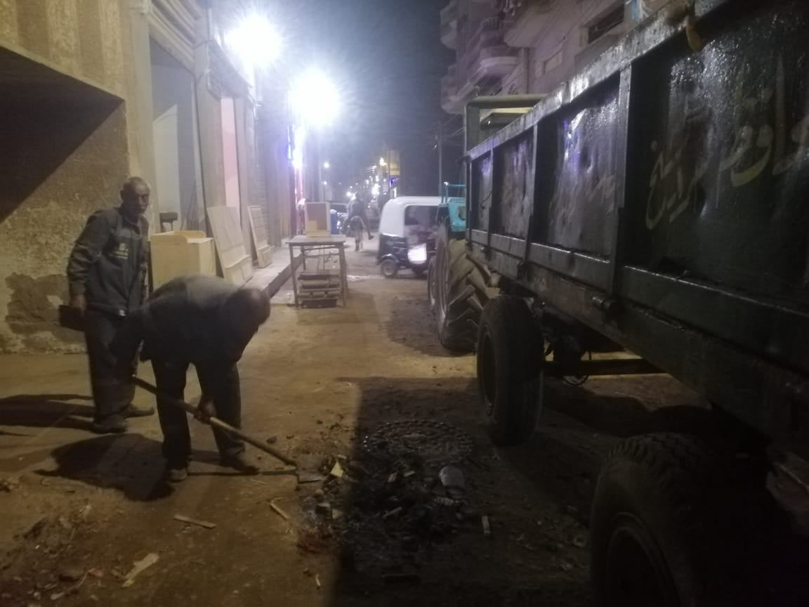 وجارى العمل على تطهير شارع المركز مع شارع عبد العال مع شارع عبد العزيز من أول السينما، وتم الانتهاء من مناطق الصفا والمحرقة وعزبة عميرة شارع جابر الريفى الكورنيش من عند أرض مفتاح والكورنيش من أمام المحلج لحد بعد نادى القضاء والكوبرى العلوى حى دحروج شارع الثورة والحرية وعمر بن الخطاب.