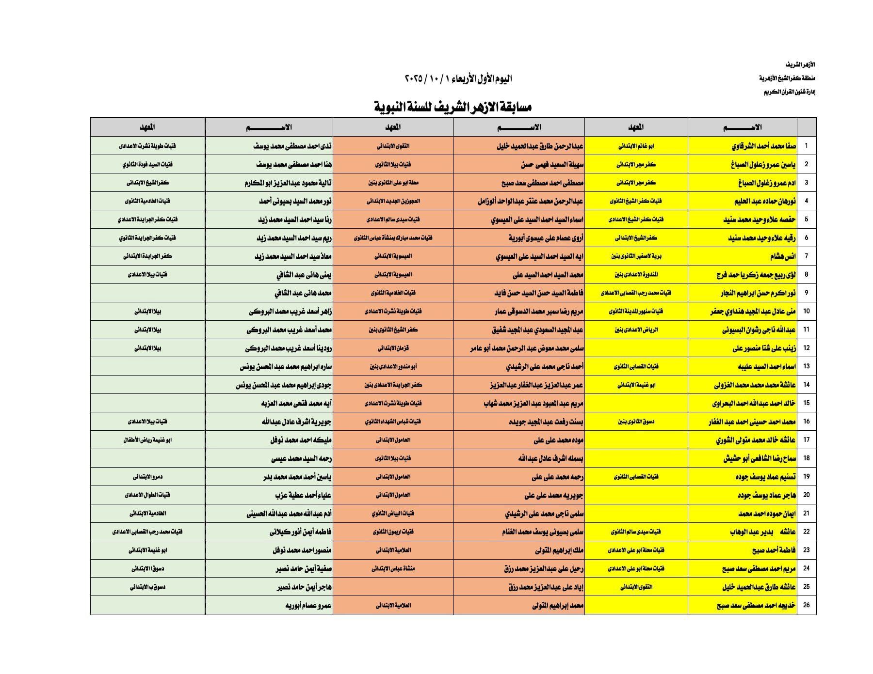 الأسماء التي تجرى لها الإختبارات يوم الأربعاء الأول من شهر اكتوبر 2025
