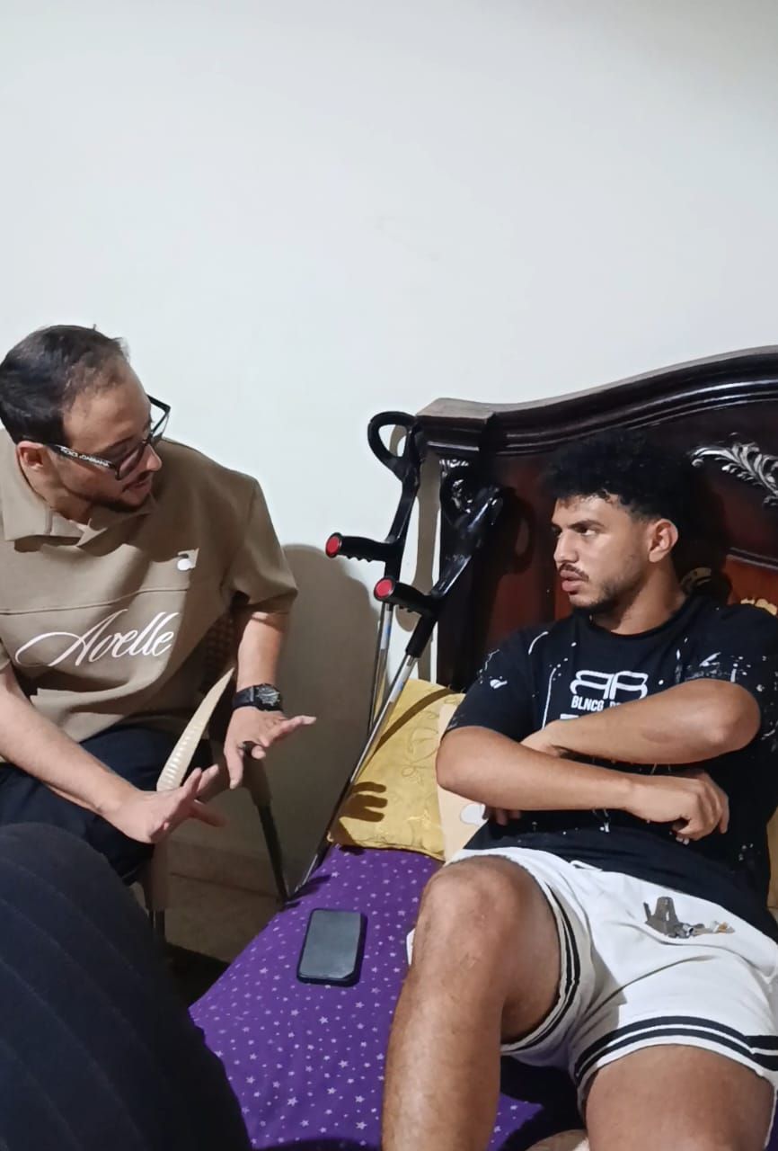 رئيس نادى بلدية المحلة يطمئن على لاعب الفريق بمنزله بكفر الشيخ