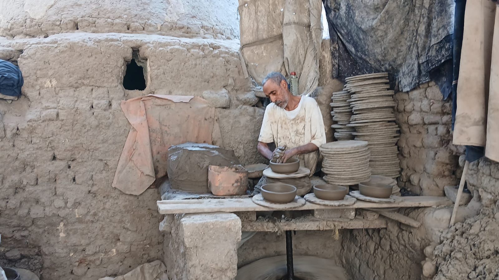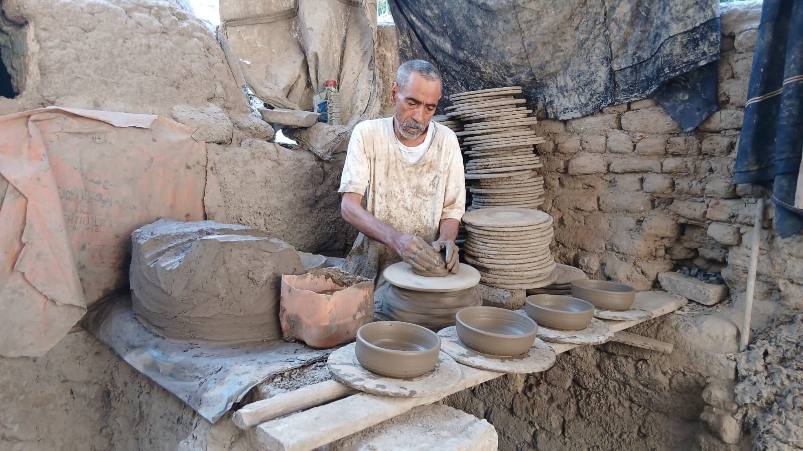 هنا لا صوت يعلو فوق صوت الحرفة، لم يهتز العم محمد أمام تغيرات الزمن والحداثة، بل ظل وفيا لمهنته التي ورثها عن الأجداد، ليصبح شاهدًا على صناعة تراثية تجسد الحكاية بين صوت حركة الدولاب وملمس الطين الخارج من أرض البلاد، في لوحة تجمع بين الإبداع والصبر، وصورة الماضي التي لا تزال حية في أيادي الحاضر.