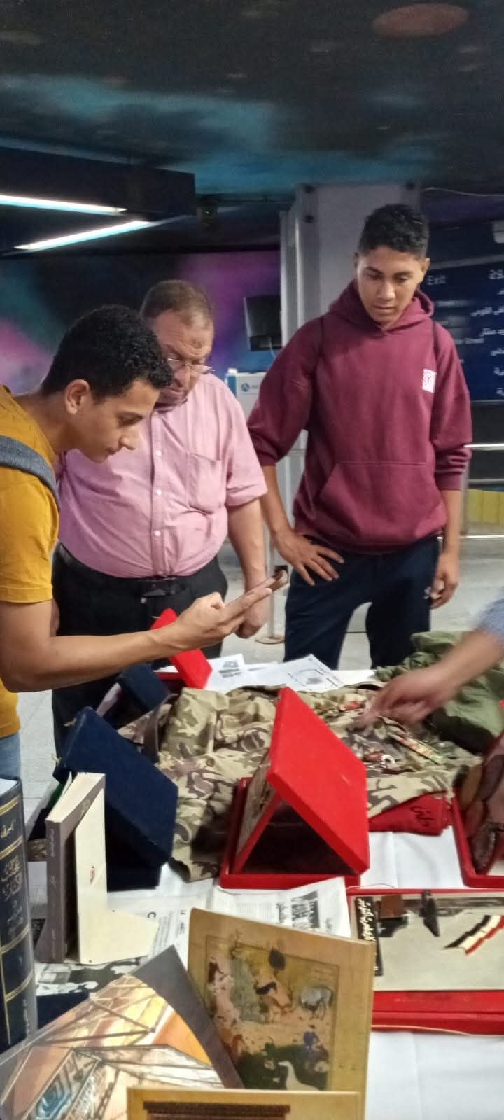 وقدمت المكتبة خلال مشاركتها عرضًا مميزًا لمقتنيات الكوماندوز البطل "شزام"، أحد رموز البطولة والفداء، بمشاركة عبدالله كوماندوز نجل البطل، الذي استعرض أمام الحضور ملامح من بطولات والده وتضحياته الخالدة، وشهد المعرض إقبالًا واهتمامًا كبيرًا من الزوار لما تحمله المقتنيات من قيمة وطنية وتاريخية توثق بطولات أبناء مصر .