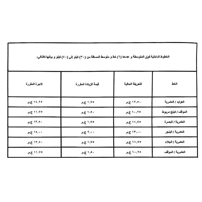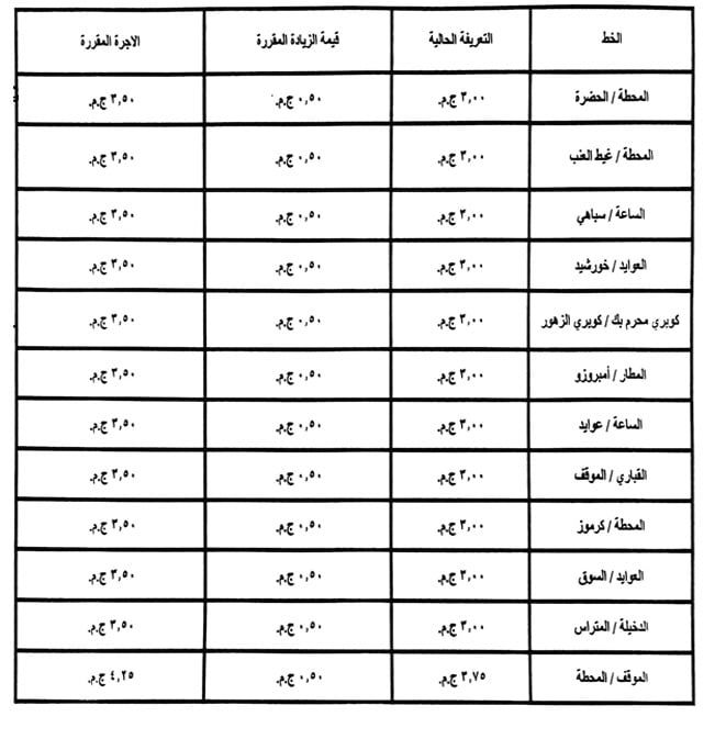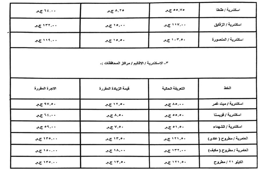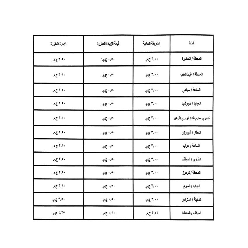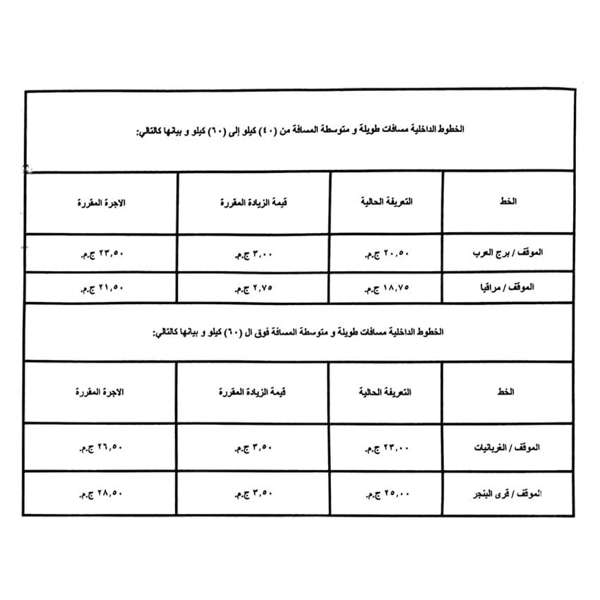 وشدد المحافظ على ضرورة الإعلان الواضح عن التعريفة الجديدة في جميع المواقف والمحطات، مع إلزام السائقين بوضع ملصقات رسمية تتضمن خط السير والأجرة المقررة لكل وسيلة نقل، منعًا لأي تلاعب أو تقسيم غير قانوني لخطوط السير.