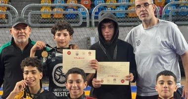 الجمعة، 07 نوفمبر 2025 10:45 صهنأ الدكتور عزت محروس وكيل وزارة الشباب والرياضة بكفر الشيخ، اللاعبين الخمسة "احمد ابراهيم الحاصل على الميدالية الذهبية وزن 48 ك، محمد ابو غنام، صاحب الفضية وزن 62 ك، و الثلاثة الحاصلين على برونزية البطولة "ماهر ميلاد وزن 52 ك، خالد محمود 57 ك، أحمد رضا 62 ك " منوهاُ، أنها المرة الأولى لمشاركة الأبطال الصغار نتاج تدريب وإعداد جيد من قبل الجهاز الفني بمركز مصارعة بيلا.