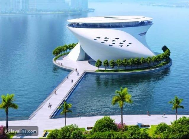 يرتفع المتحف خمسة طوابق فوق سطح المياه، ليعكس مزيجاً ساحراً بين التراث الإماراتي الأصيل والهندسة المعمارية الحديثة التي تتميز بالهدوء والقوة.