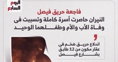 الخميس، 02 أكتوبر 2025 12:15 صحاصرت النيران أسرة كاملة داخل شقتها وتسببت فى وفاة أم وأب ونجلهم فى منطقة فيصل بعدما امتد الحريق من محل حتى وصل إليهم وتسبب فى فاجعة وفاتهم ونلخص الحادث فى نقاط.