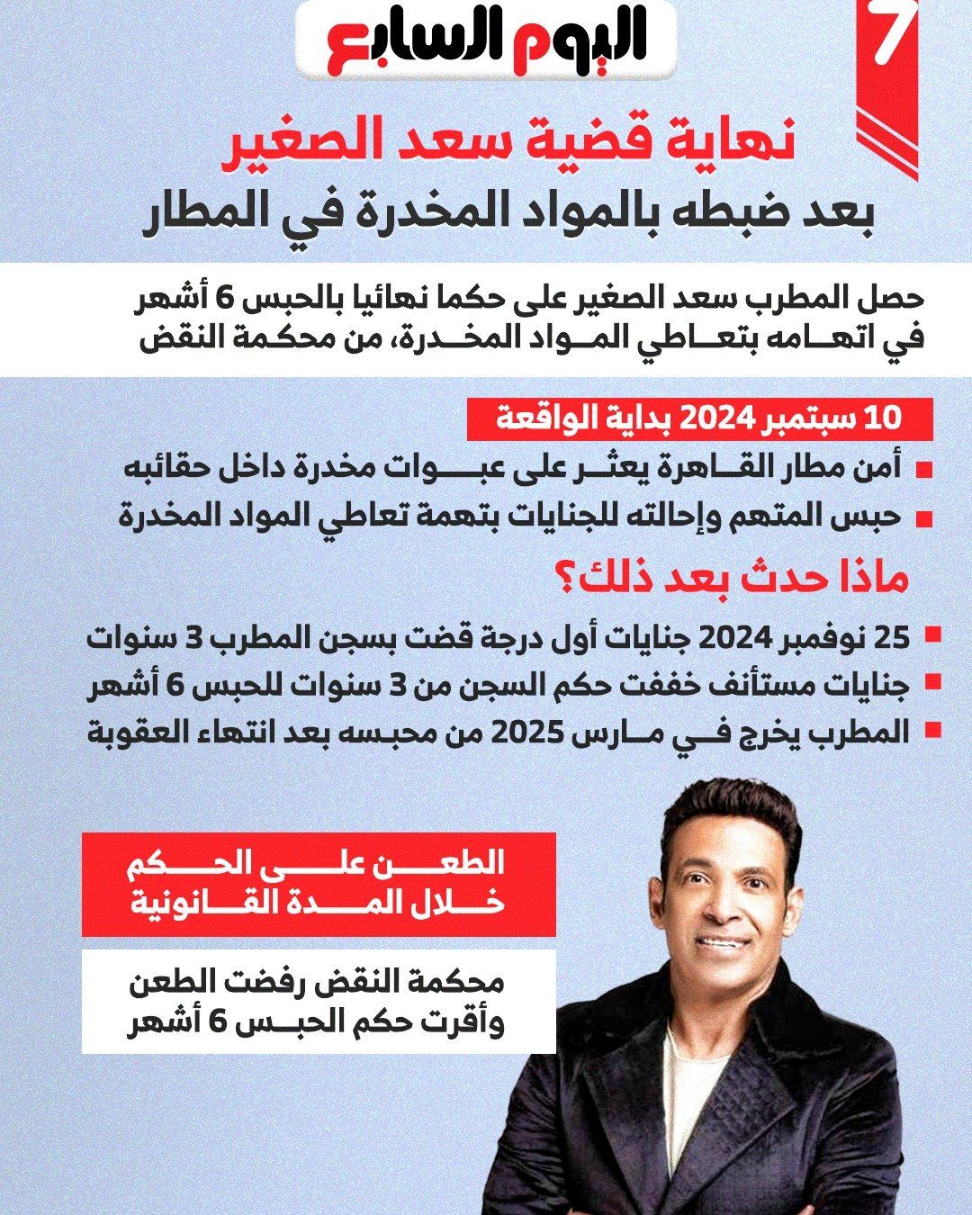 ــ "25 نوفمبر 2024"، الجنايات تعاقب سعد الصغير بالسجن 3 سنوات.