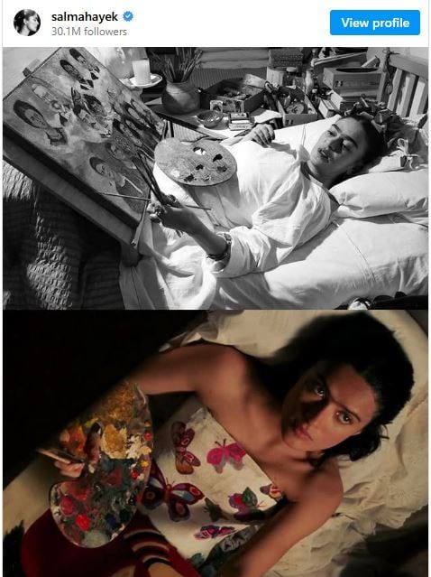 ونشرت حايك عبر حسابها على إنستجرام صورة نادرة لفريدا بجانب صورة من أدائها لشخصيتها في Frida (إنتاج 2002)، الذي رشّحها لجائزة الأوسكار.