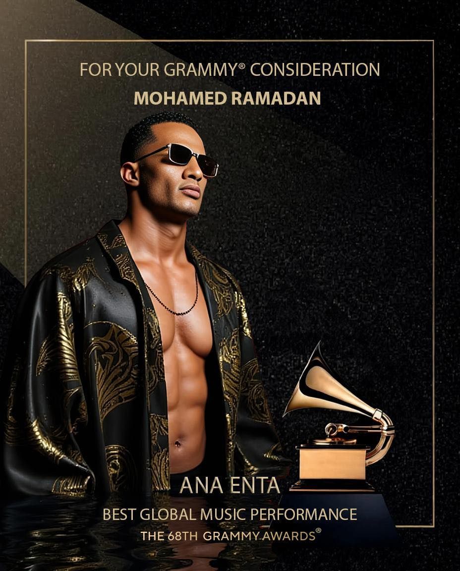 الخميس، 02 أكتوبر 2025 10:25 مكشف محمد رمضان عن دخوله المرحلة الأولى من التصوير لجوائز جرامي أغنية أنا أنت، حيث كتب على حسابه بموقع فيس بوك: الحمد لله دخول اسمي رسمياً في المرحلة الأولى لجوائز جرامي بأغنية أنا أنت، يعرف العالم قوة جمهوري بتوصل لفين.. الليلة التصفيات الأولى للمرشحين ثقة في الله أول جرامي ليا هتوصل مصر وسايبلكم الأكونت بتاعهم.