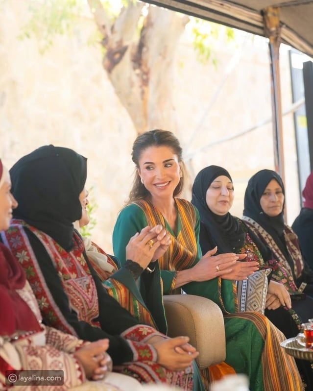 خطفت الملكة رانيا العبدالله الأنظار بإطلالة شرقية وألوان مشرقة خلال زيارة محلية إلى محافظة معان بالأردن، حيث تألقت بثوب شرقي بتفاصيل لافتة ونسقت معه حقيبة مستوحاة من زهرة اللوتس.