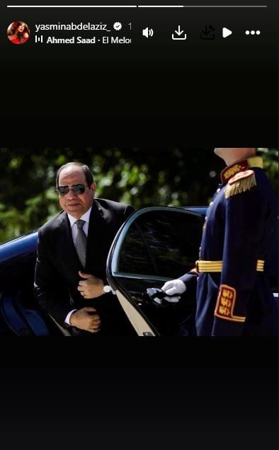 احتفت النجمة ياسمين عبد العزيز بانعقاد قمة شرم الشيخ للسلام على أرض مصر، حيث شاركت صورة عبر "استوري" حسابها على "إنستجرام" للرئيس عبد الفتاح السيسي، لحظة وصوله لمقر المؤتمر.