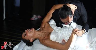 الجمعة، 31 أكتوبر 2025 12:58 صشهد حفل زفاف المخرج هادى الباجورى سقوط عروسه هايدى خالد، وذلك أثناء رقصهما معا فى حفل زفافهما والذى شهد أول ظهور فى مناسبة عامة للنجمة منة شلبى وزوجها المنتج أحمد الجناينى، وذلك خلال حفل الزفاف الذى حضره العديد من مشاهير الفن ومنهم محمد رمضان والذى أشعل أجواء الحفل.