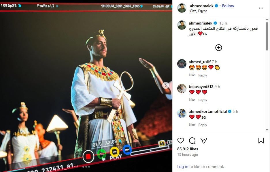 ونشر مالك صورة من الحفل عبر حسابه الرسمي على إنستجرام، وعلق عليها قائلاً: "فخور بالمشاركة في افتتاح المتحف المصري الكبير"، لتتفاعل معه جماهيره بشكل واسع عبر مواقع التواصل الاجتماعي.