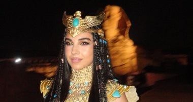 سلمى ابو ضيف بالزى الفرعونى قبل مشاركتها فى افتتاح المتحف المصري