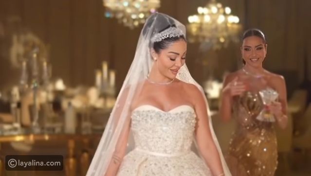 وتماشت تسريحة الشعر مع الطابع الملكي للفستان، إذ اختارت الكعكة العالية المرفوعة، مزينة بطوق مرصع بالكريستال، ليُسدّل عليها طرحة الزفاف الطويلة، ما منحها ارتفاعاً إضافياً وفخامة استثنائية. وأكملت العروس إطلالتها بأظافر بلون النيود اللؤلؤي الهادئ، ما أضفى لمسة ناعمة وأنثوية على المظهر العام.