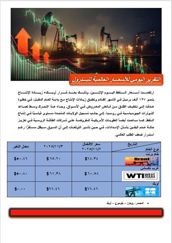 وجاء هذا التحرك وسط تصاعد التوترات الجيوسياسية في روسيا، إلى جانب تسجيل الولايات المتحدة مستوى قياسيا في إنتاج النفط كما ساهمت أيضاً العقوبات الأمريكية المفروضة على شركات الطاقة الروسية في تعزيز حالة عدم اليقين بشأن الإمدادات، في حين تشير التوقعات إلى أن السوق سيظل مستقرا رغم استمرار ضعف الطلب العالمي.