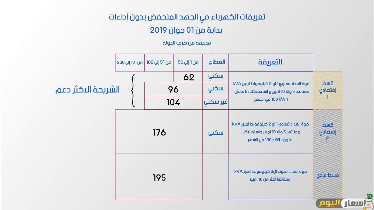 تختلف تسعيرة الكهرباء الجديدة عن القديمة خلال شهر يونيو لذلك قمنا بعرضها حسب عدد الاستهلاك للكيلووات في الساعة مقسمة إلى شرائح وتتلخص في النقاط التالية: