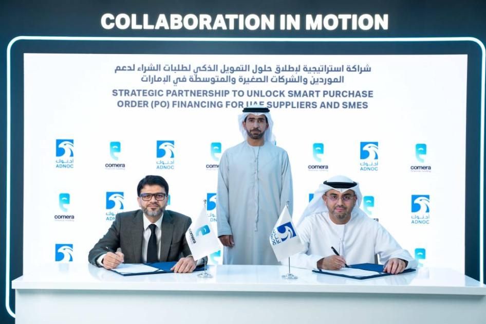أعلنت «أدنوك»، خلال معرض ومؤتمر «أديبك 2025»، توقيع شراكة استراتيجية مع شركة «كوميرا المالية القابضة»، لتسريع حصول كل من الشركات الصغيرة والمتوسطة والموردين المحليين المتعاقدين مع «أدنوك» على التمويل. سيتم من خلال هذا التعاون إطلاق برنامج يُمكّن الشركات الصغيرة والمتوسطة والموردين من الوصول إلى رأس المال العامل بشكل أكثر كفاءة، وتنفيذ طلبات الشراء من «أدنوك» بشكل أسرع.