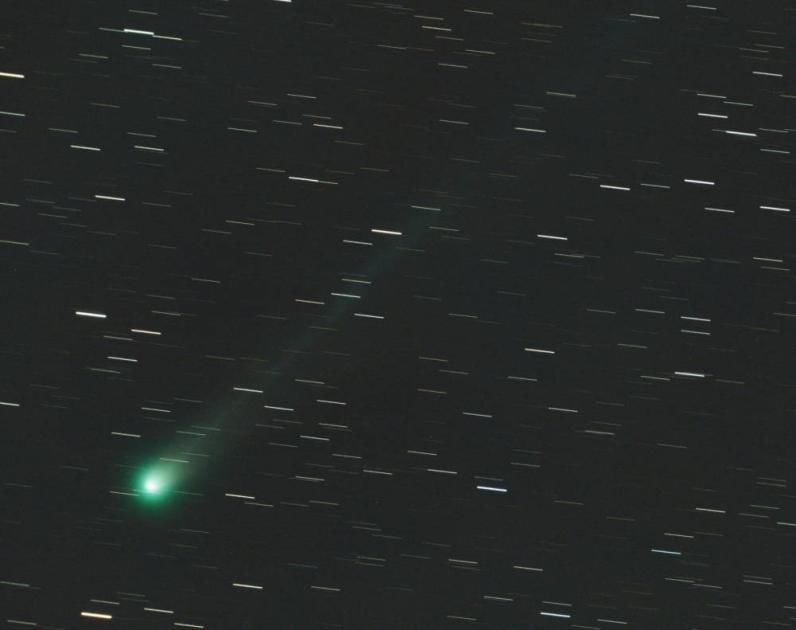 وتم التقاط صورة المذنّب ما بين الساعة 04:10 والساعة 05 فجراً بتوقيت الإمارات، وتبلغ مدة الصورة 42 دقيقة، وهي تتكون من تجميع 84 صورة مدة كل واحدة منها 30 ثانية. واستخدم تلسكوب كاسر بقطر 4 بوصات وكاميرا ملونة، ومرشح للتلوث الضوئي. ويظهر المذنّب بلون أخضر، وذلك لتأين جزيئات الكربون في المذنّب بسبب الأشعة فوق البنفسجية القادمة من الشمس، ويلاحظ ذيل المذنًب على كامل الصورة تقريباً.
