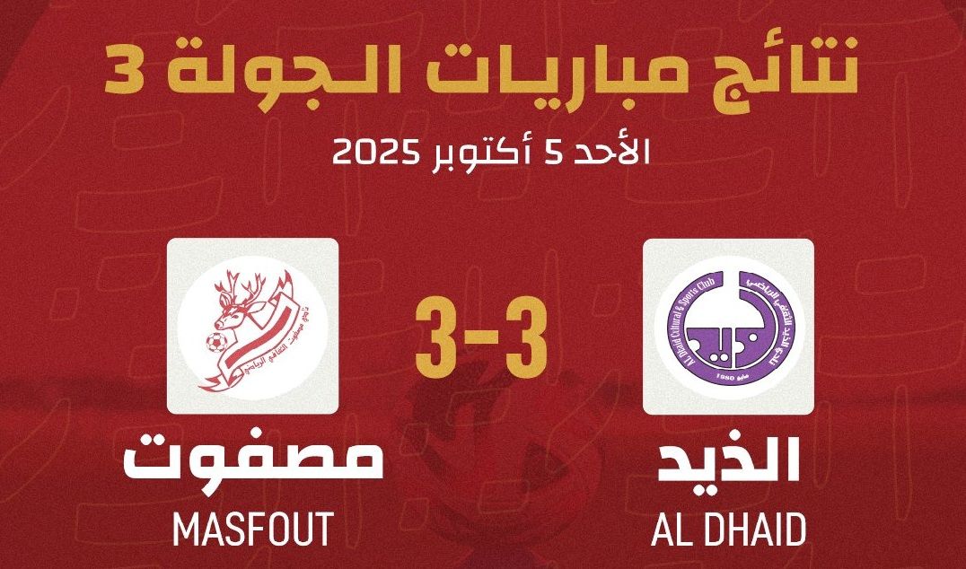 تعادل فريق الذيد وضيفه مصفوت 3-3، اليوم الأحد، في دوري الدرجة الأولى لكرة القدم، ليحصد الذيد أول نقطة له في الموسم بعد ثلاثة جولات بينما صعد مصفوت للمركز السابع برصيد أربع نقاط.