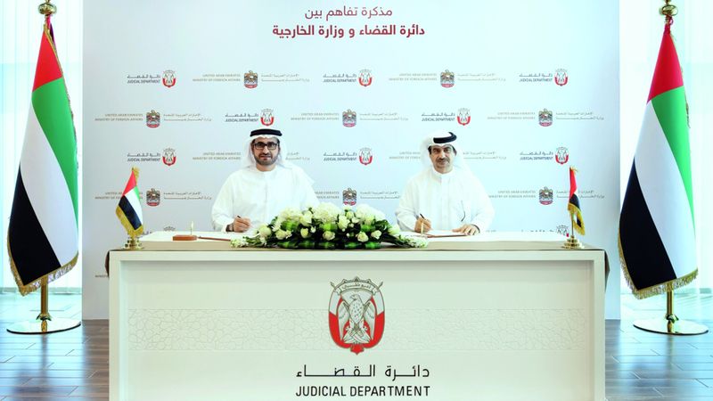 ووقّع مذكرة التفاهم كل من، وكيل وزارة الخارجية، عمر عبيد الحصان الشامسي، ووكيل دائرة القضاء في أبوظبي المستشار يوسف سعيد العبري.