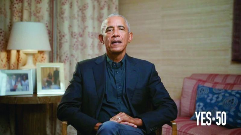 في خضم معركة محتدمة بين الديمقراطيين والجمهوريين، ظهر الرئيس الأميركي السابق باراك أوباما، في إعلان يحث فيه ناخبي كاليفورنيا على الموافقة على الاقتراح رقم 50 الذي قد يضيف ما يصل إلى خمسة مقاعد في مجلس النواب، الذي يسيطر عليه الديمقراطيون في كاليفورنيا.