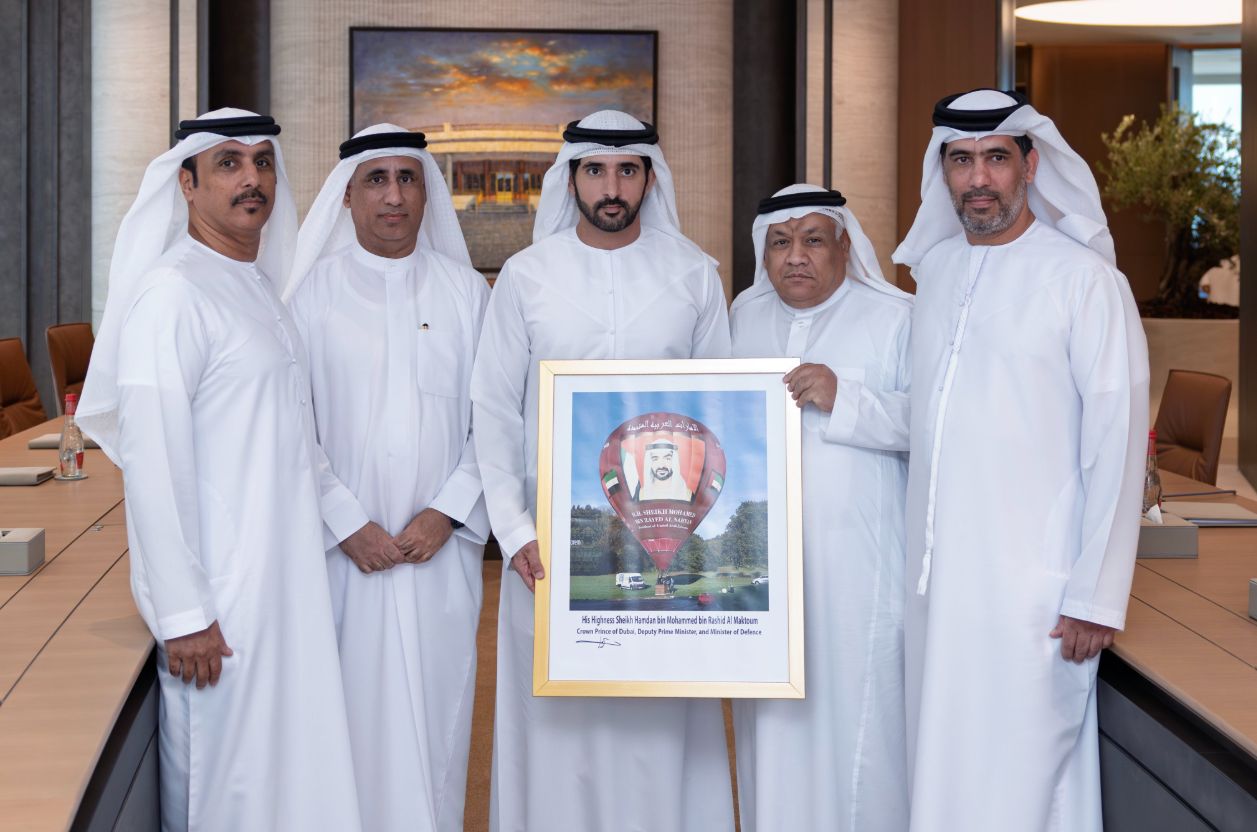 استقبل سموّ الشيخ حمدان بن محمد بن راشد آل مكتوم، ولي عهد دبي نائب رئيس مجلس الوزراء وزير الدفاع رئيس المجلس التنفيذي لإمارة دبي، أعضاء طاقم وفريق منطاد صاحب السمو الشيخ محمد بن زايد آل نهيان رئيس الدولة “حفظه الله”، الذي من المقرر أن يجوب عدداً من الدول في المنطقة العربية والعالم، لنقل الصورة الحضارية المشرقة لدولة الإمارات، ونشر رسالتها الداعية إلى السلام والتسامح.
