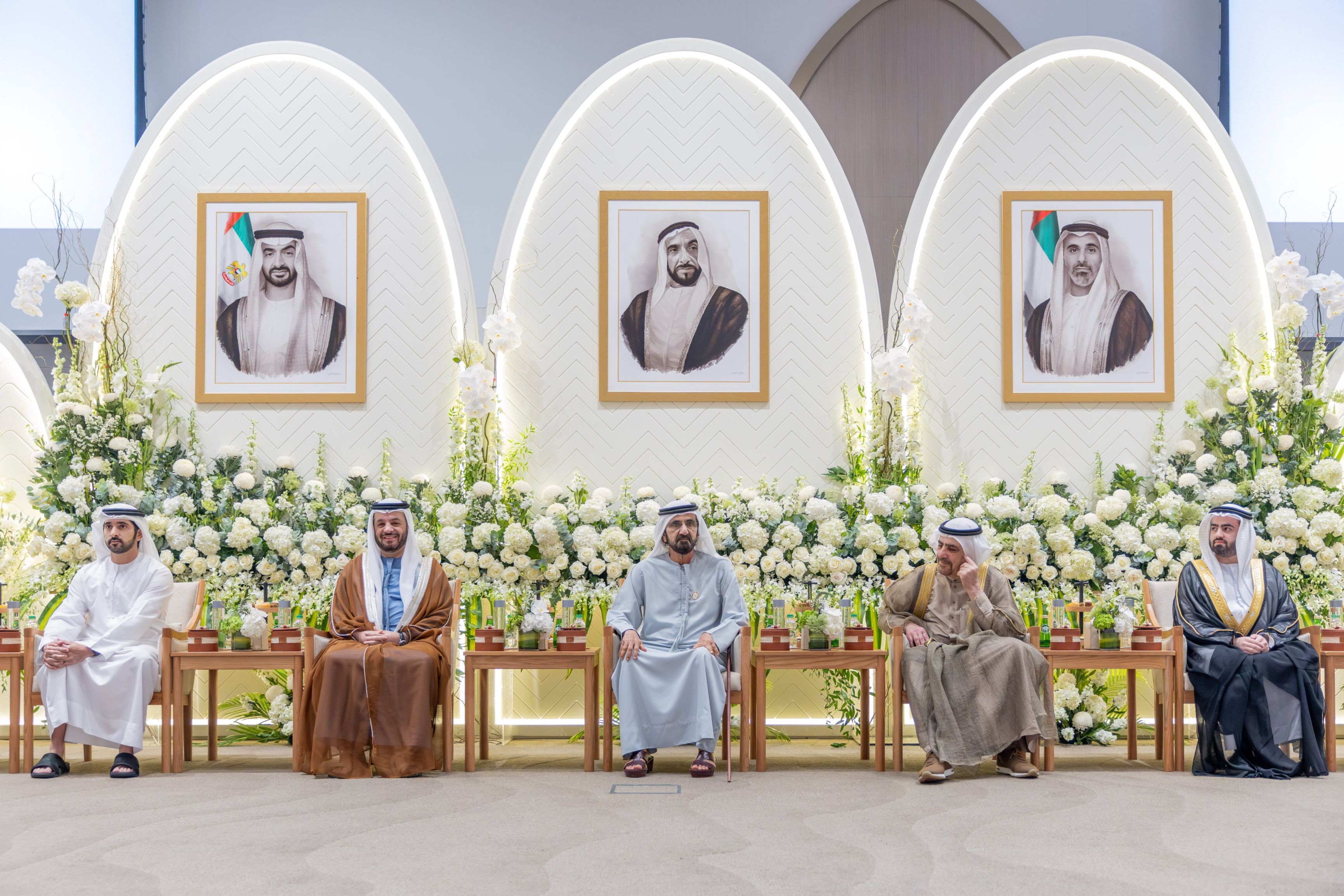 حضر صاحب السمو الشيخ محمد بن راشد آل مكتوم نائب رئيس الدولة رئيس مجلس الوزراء حاكم دبي، رعاه الله، يرافقه سموّ الشيخ حمدان بن محمد بن راشد آل مكتوم، ولي عهد دبي، نائب رئيس مجلس الوزراء، وزير الدفاع، رئيس المجلس التنفيذي لإمارة دبي، حفل الاستقبال الذي أقامه اليوم، فيصل عبد العزيز البناي في ابوظبي بمناسبة زفاف نجليه عبد العزيز، على كريمة نجيب إبراهيم محمد الزرعوني، وعبدالله على كريمة سمير مير عبد العزيز الخوري.