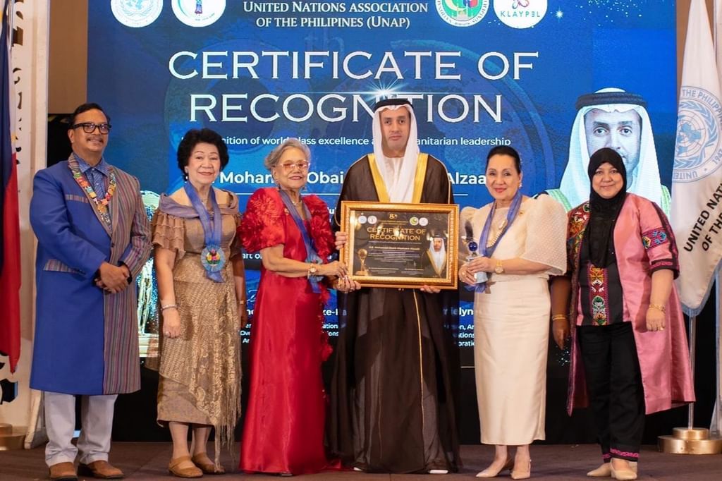 تم تكريم محمد عبيد الزعابي سفير دولة الإمارات لدى جمهورية الفلبين، ومنحه لقب "سفير النوايا الحسنة للسلام"، من قبل جمعية الأمم المتحدة في الفلبين (UNAP)، خلال الاحتفال بالذكرى الثمانين لتأسيس منظمة الأمم المتحدة، وحفل جوائز العمل الإنساني المتميز الذي أقيم بتاريخ 24 أكتوبر 2025.