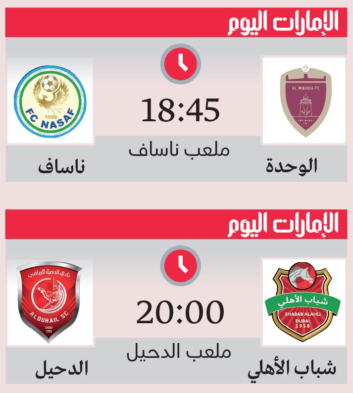يحلّ شباب الأهلي ضيفاً على الدحيل القطري عند الساعة الثامنة من مساء اليوم، ضمن الجولة الرابعة من دوري أبطال آسيا «النخبة»، فيما يخوض الوحدة مواجهة قوية خارج ملعبه أمام ناساف الأوزبكي الساعة 18:45 مساء على الملعب المركزي في مدينة قارشي.