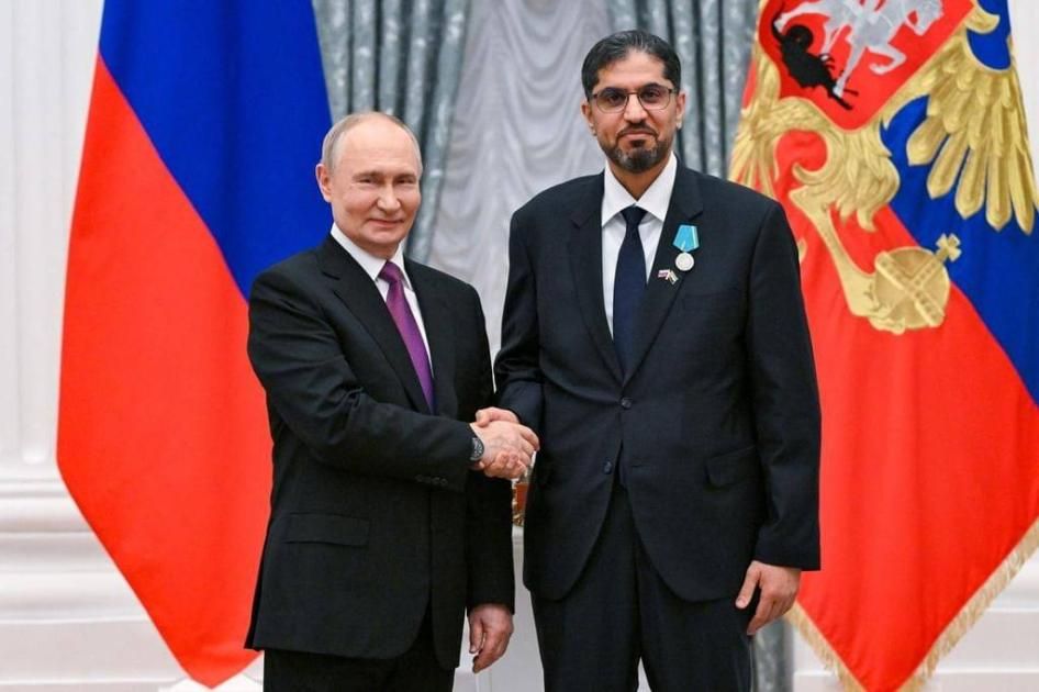 قلد فلاديمير بوتين، رئيس روسيا الاتحادية، الدكتور محمد أحمد الجابر، سفير دولة لدى روسيا الاتحادية، وسام «بوشكين» تقديرا لإسهاماته الكبيرة في تعزيز العلاقات الثقافية والإنسانية بين روسيا الاتحادية ودولة الإمارات بموجب مرسوم رئاسي صدر في 22 أكتوبر 2025.