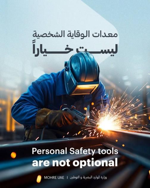 وأوضحت الوزارة عبر حساباتها على وسائل التواصل الاجتماعي، أن معدات السلامة ليست خياراً بل أدوات وقاية لا غنى عنها في بيئة العمل، داعية جميع العمال إلى التقيّد بها بشكل دائم.