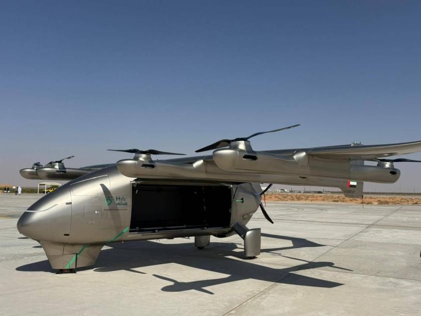 وأضاف أن «هيلي» مزودة بثمانية محركات كهربائية للإقلاع العمودي، إضافة إلى محرك احتراق داخلي للتحليق الأفقي، وتحتوي على مقصورتين مخصصتين للإلكترونيات، إحداهما أمامية للتحكم بأنظمة الطيران، وأخرى لخدمات الطائرة، كما تضم غرفة شحن كبيرة ذات أرضية مسطحة مصممة لحمل المنصات اللوجستية المعيارية بسهولة وسرعة عالية.