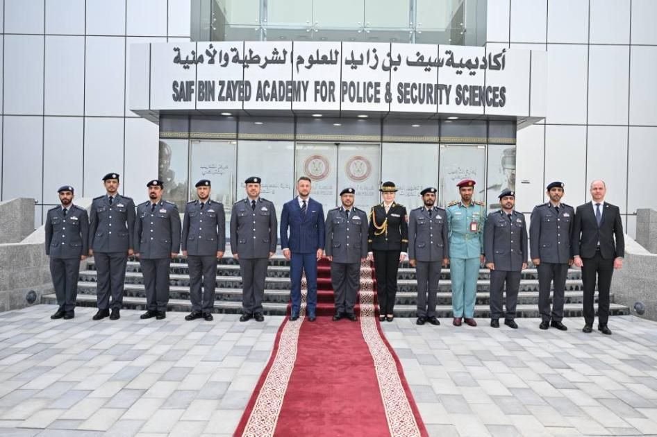 وجرى خلال اللقاء، بحث سبل تعزيز التعاون في مجالات العمل الشرطي والأمني، واستعراض فرص المقارنة المعيارية لأفضل الممارسات والخدمات التطويرية، بالإضافة إلى التعرف إلى الدور الريادي للأكاديمية في اعتماد أحدث التقنيات في التدريب الشرطي والأمني بما يواكب أرقى المعايير والممارسات العالمية.