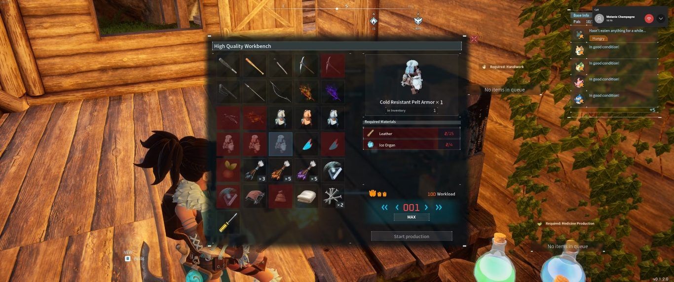 - عند دخولك لأول مرة إلى Palworld، ستحتاج إلى صنع نار مخيم أو شعلة على الأقل لحمايتك من برد الليل.