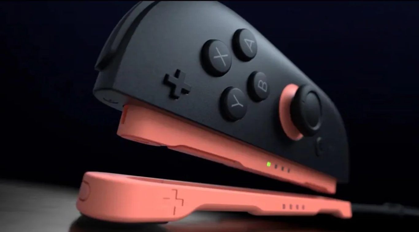لم تعد عصا التحكم Joy-Con تعمل من خلال الانزلاق، بل يتم إدخالها مباشرة في الجهاز باستخدام موصل بارز في المنصة نفسها يتصل بمنفذ على الحافة الداخلية لوحدات تحكم Joy-Con، وعلى الرغم من أن هذا لم يُؤكَّد في العرض الترويجي، إلا أن الشائعات تشير إلى أن كل Joy-Con يتم تثبيتها باستخدام مغناطيس مشابه لكابلات الشحن Magsafe الخاصة بأجهزة الكمبيوتر المحمولة من Apple.