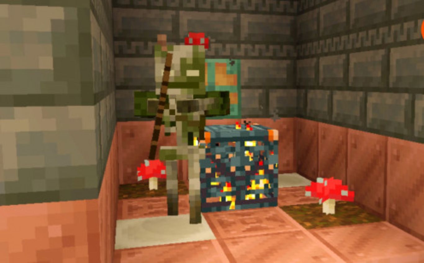 الهيكل العظمي يبقى من الأعداء الكلاسيكية في اللعبة، حيث يهاجم باستخدام القوس من مسافة بعيدة. وجوده داخل هذه الغرف يزيد من صعوبة المواجهة، خاصة عند ترافقه مع كائنات أخرى مثل الـ Bogged أو الـ Breeze.