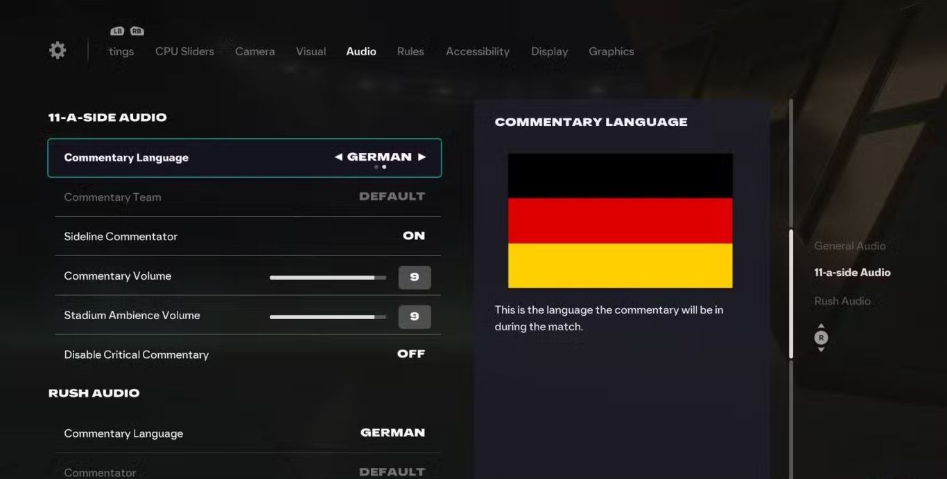 تغيير لغة التعليق لتتناسب مع الدوري في FC 26